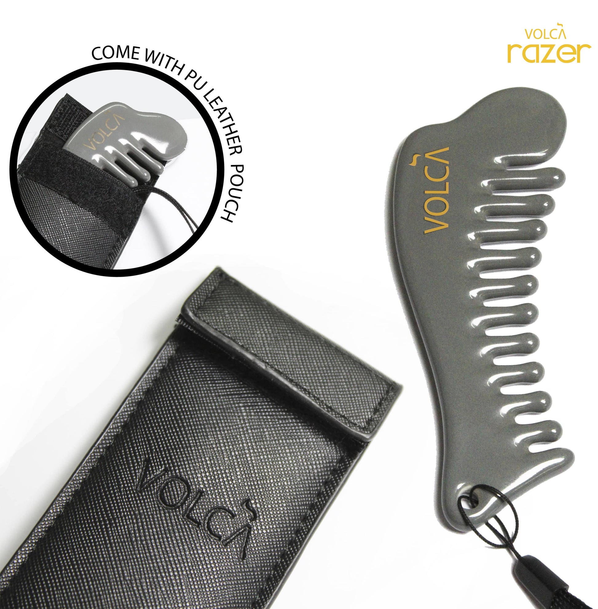 Volca Razer Comb is made of high-quality ceramic body fired at 1150 degree celsius with high contents of volcanic mineral powder that releases high levels of Far Infrared Ray (FIR) and Negative Ions that are long-lasting. With Volca Razer Comb, only 10 minutes every day can improve scalp health while fighting against hair-related problems. It enhances hair growth and improves blood circulation, keeping your hair youthful.